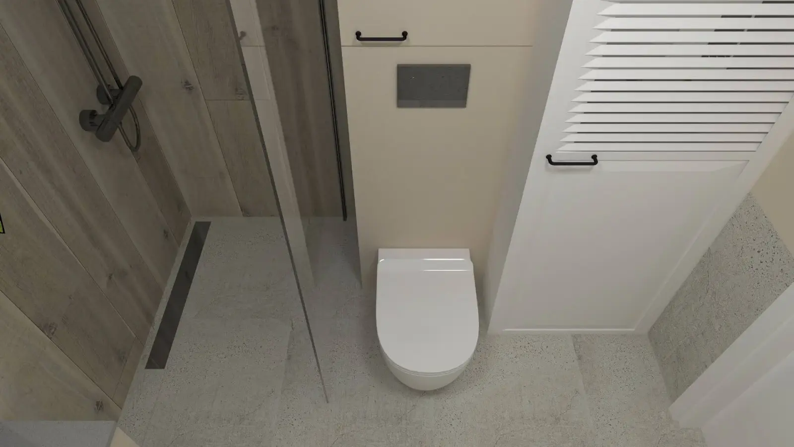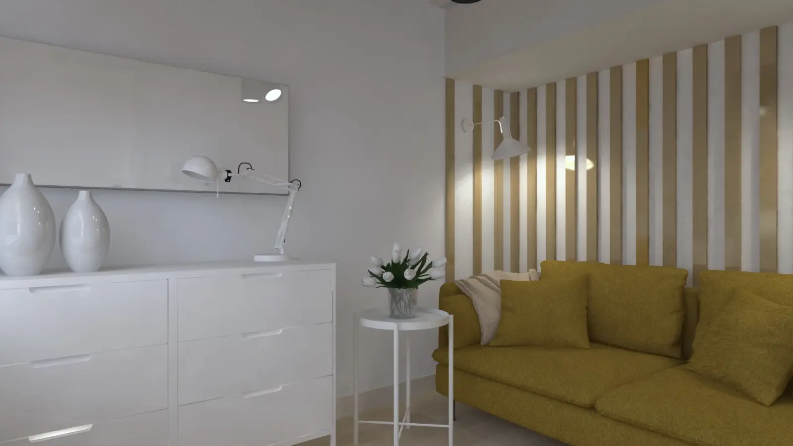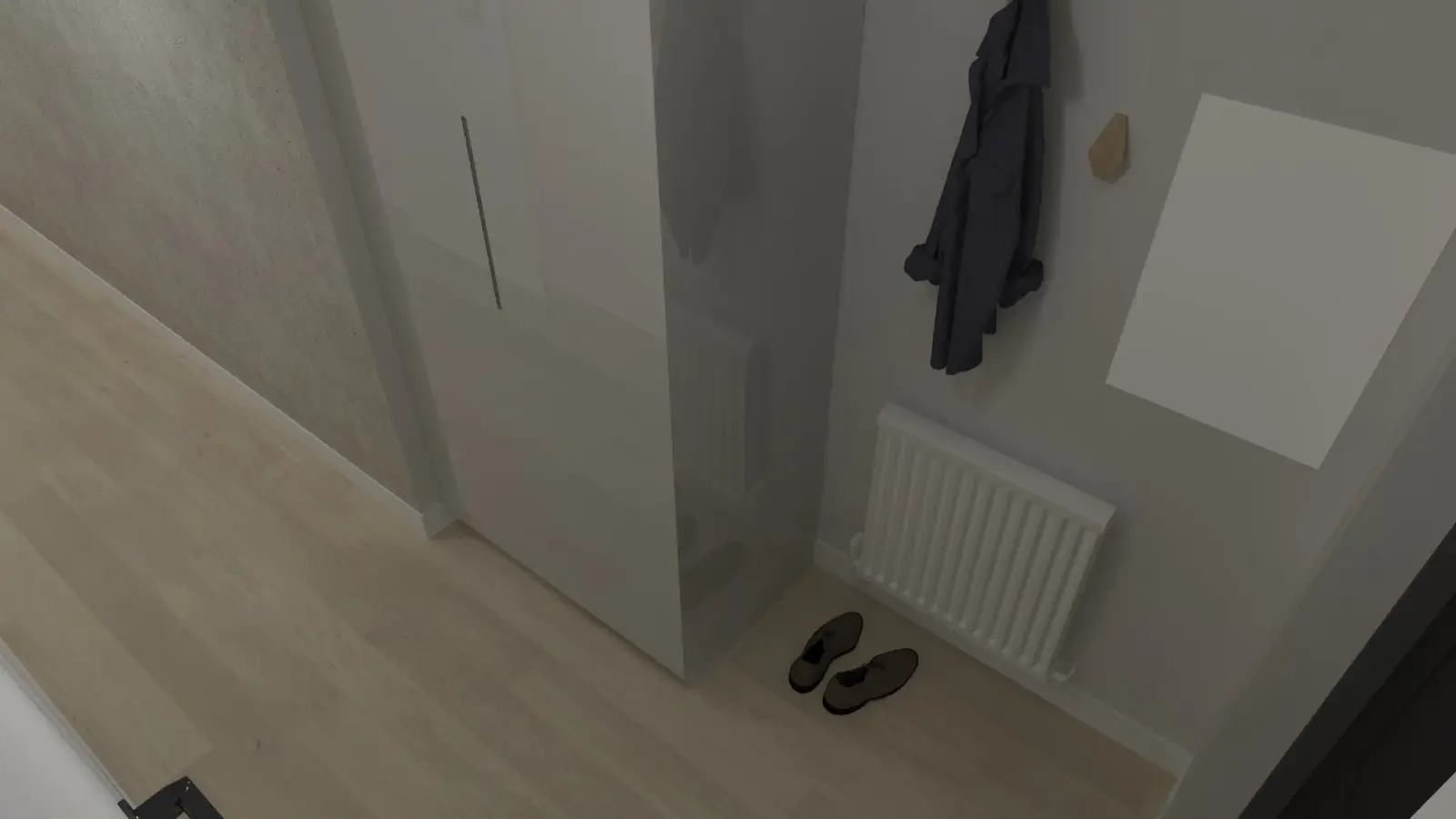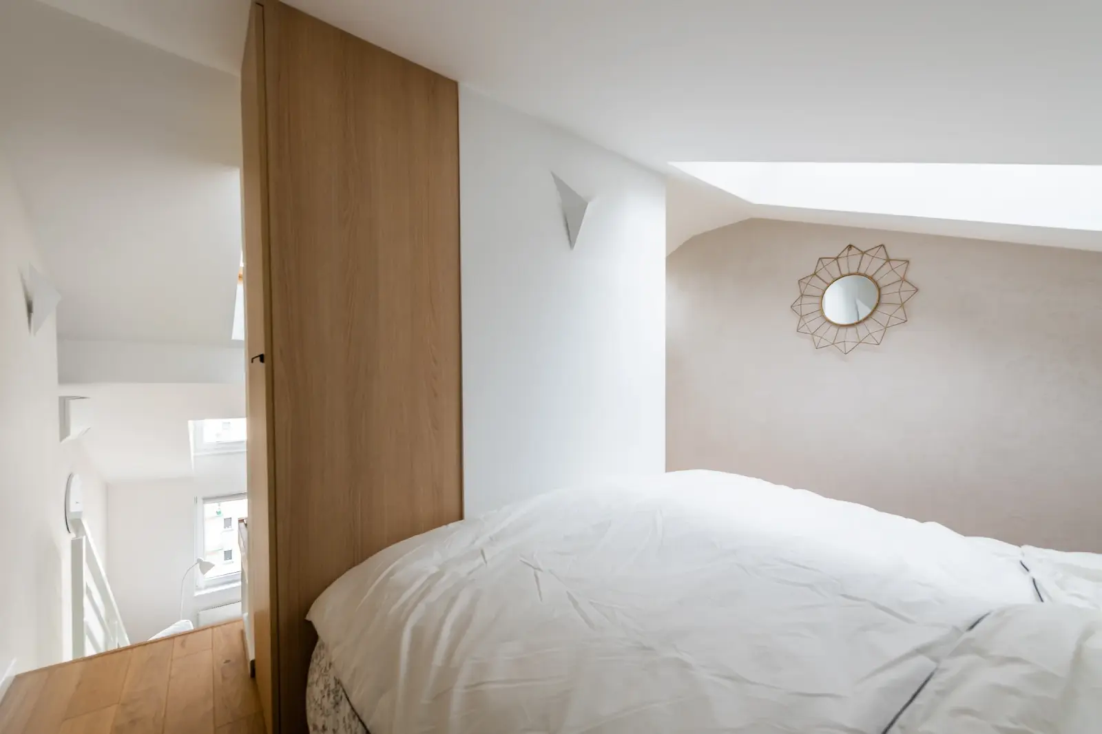 Projekt mieszkania w nadbudowie jednej z kamienic w Krakowie. Kuchnia otwarta na salon, antresola z sypialnią oraz kącikiem do czytania a także łazienka oraz pokój gościnny. Ściany pokryte betonem architektonicznym.