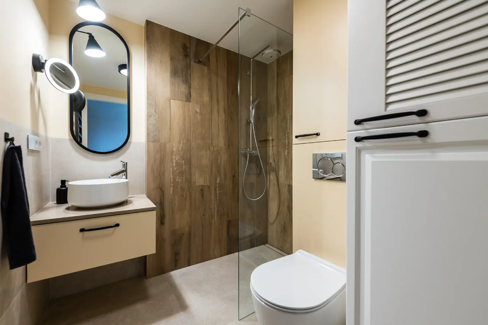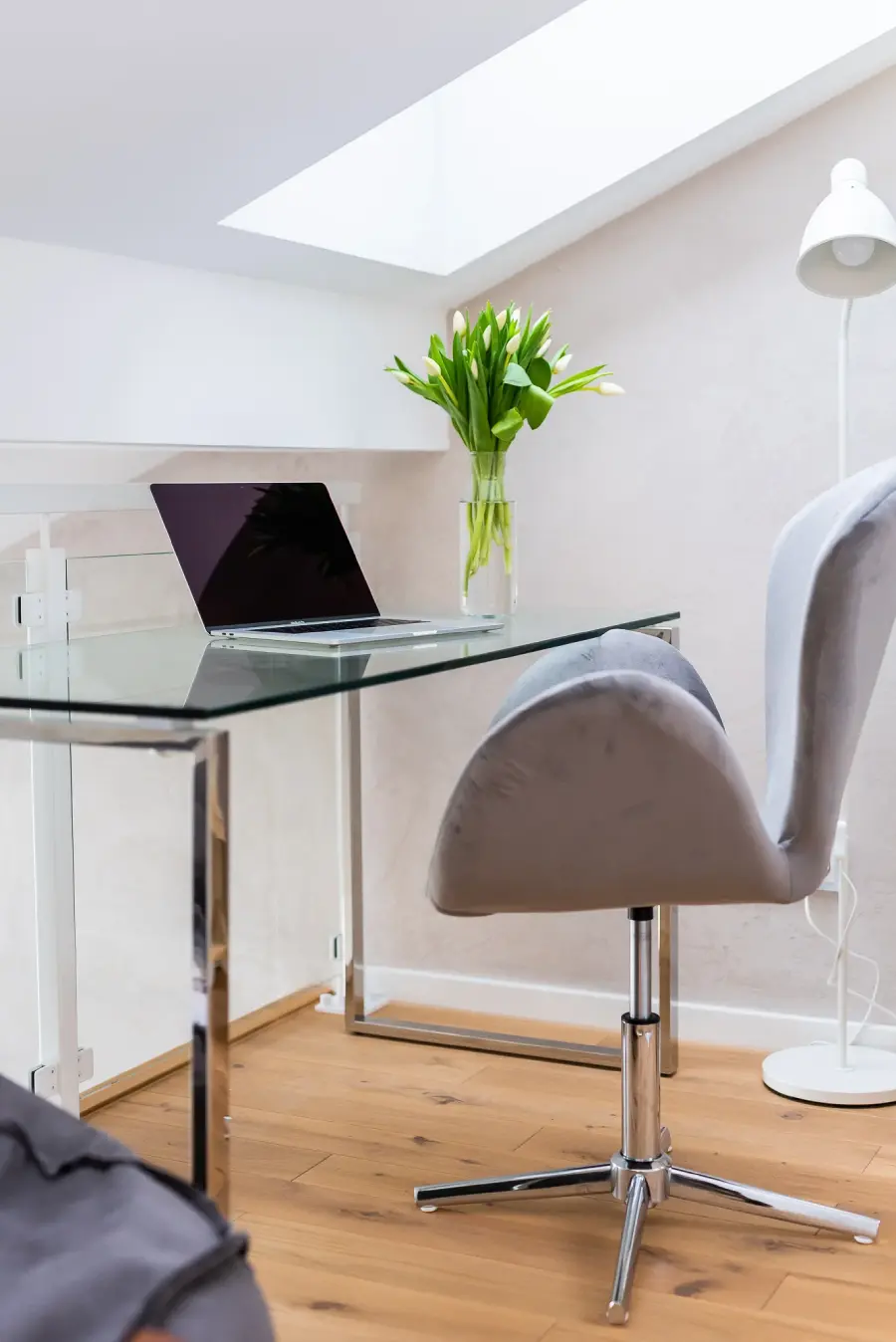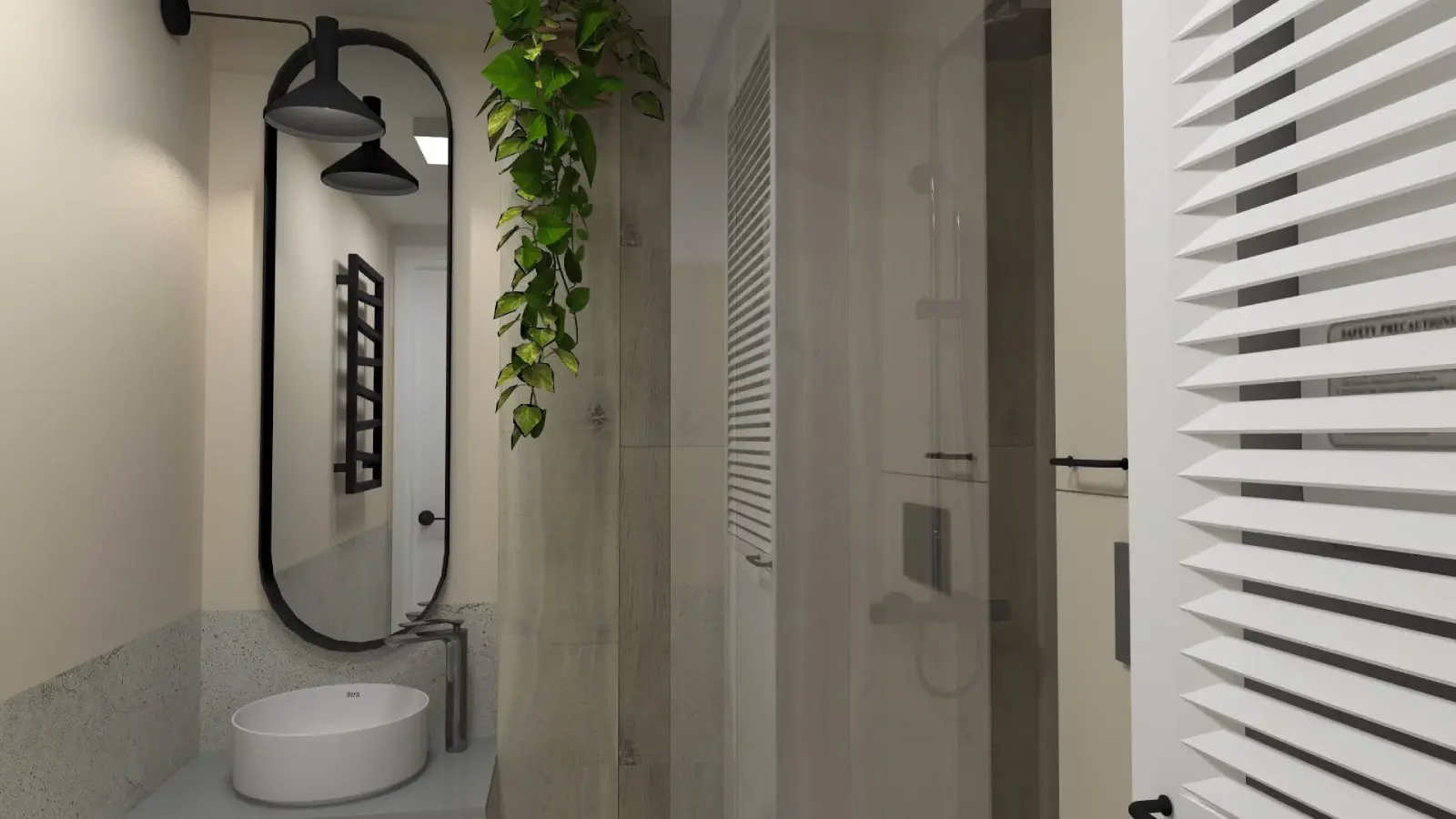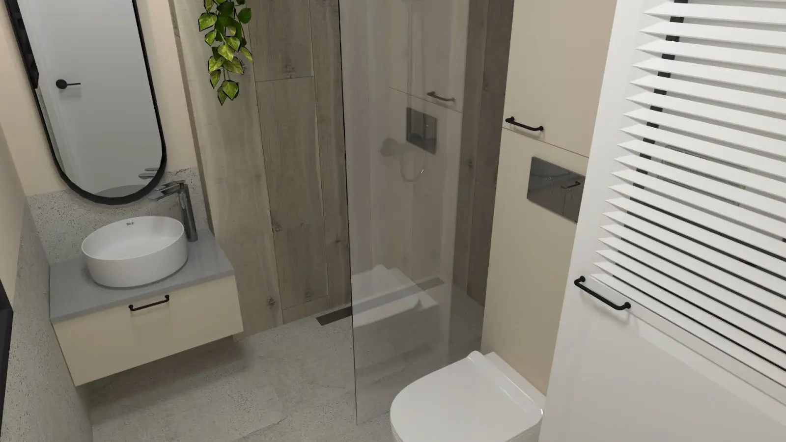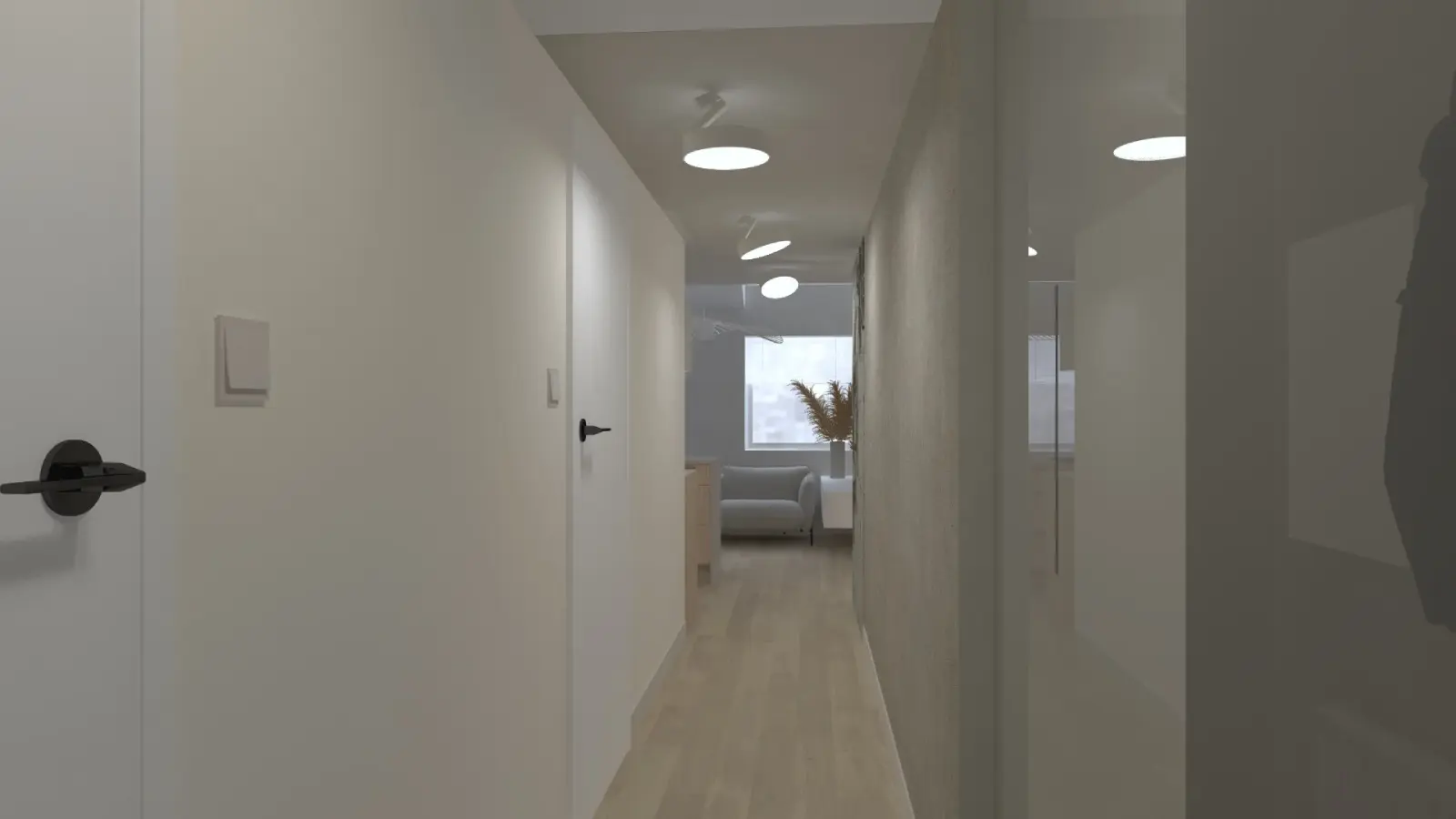 Projekt mieszkania w nadbudowie jednej z kamienic w Krakowie. Kuchnia otwarta na salon, antresola z sypialnią oraz kącikiem do czytania a także łazienka oraz pokój gościnny. Ściany pokryte betonem architektonicznym.