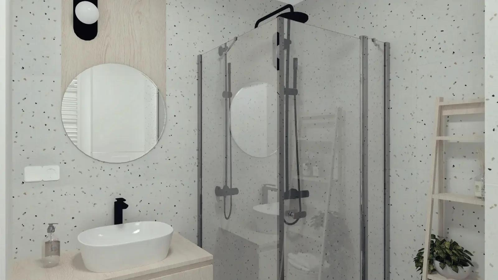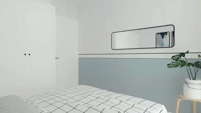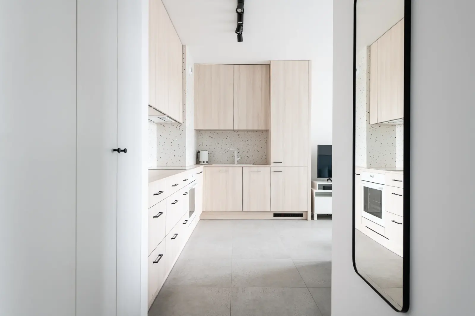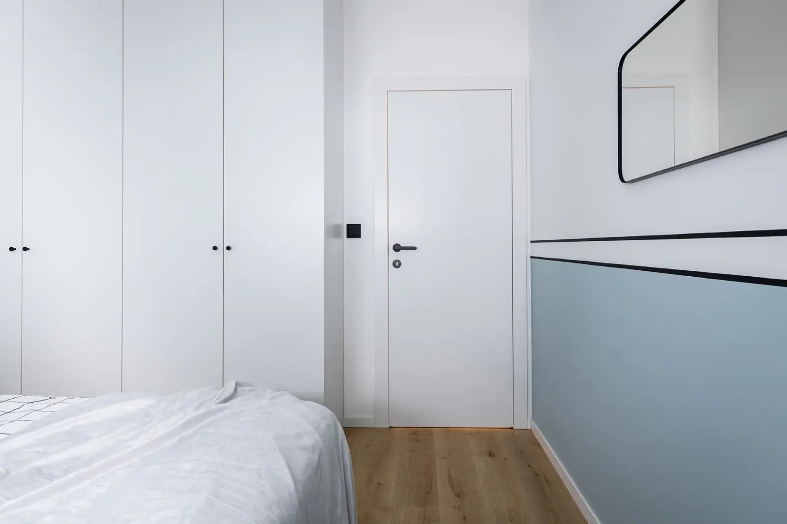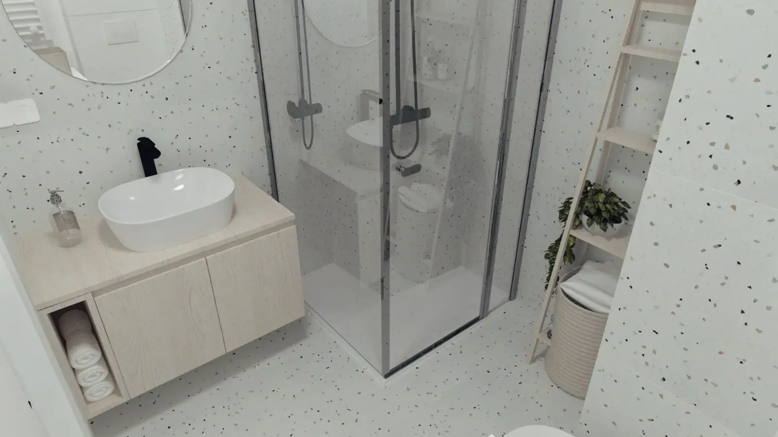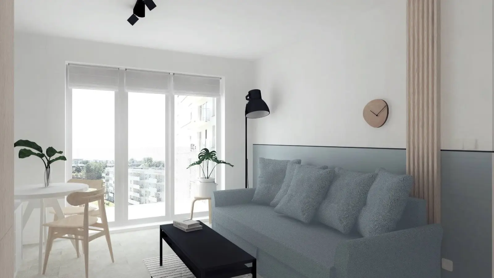 Kompleksowy projekt mieszkania ulokowanego w Katowicach w inwestycji Murapol Nowy Bażantów. Salon z kuchnią, gabinet/pokój gościnny, sypialnia oraz łazienka. Stonowane kolory z drobnymi smaczkami jak choćby płytki lastryko w łazience oraz kuchni.