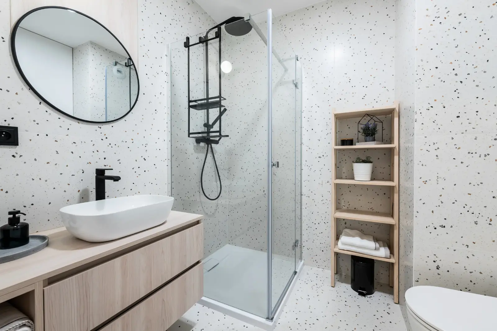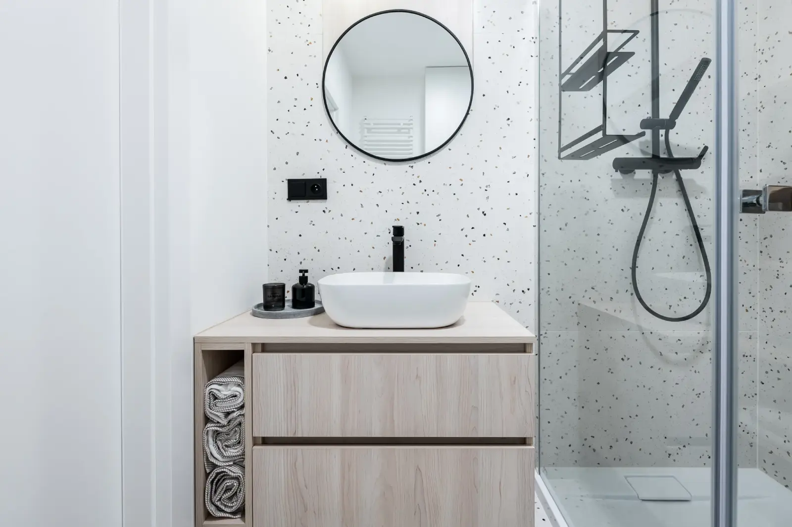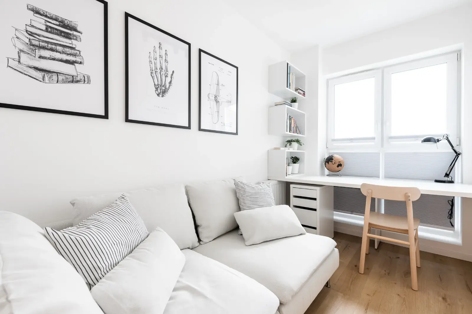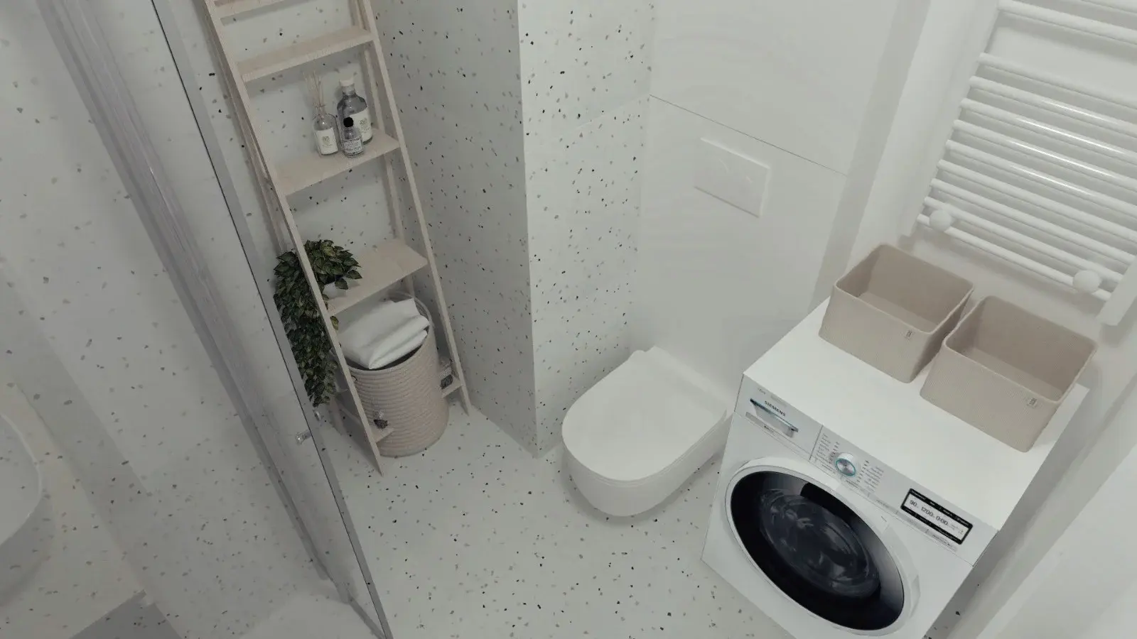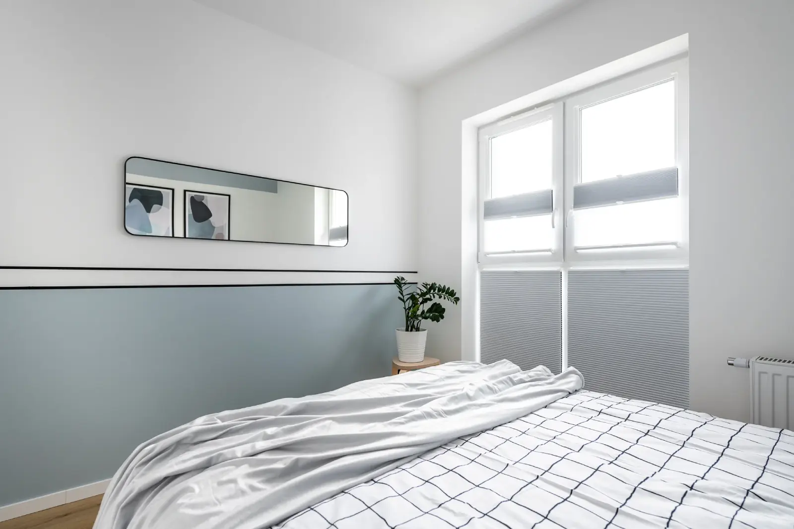 Kompleksowy projekt mieszkania ulokowanego w Katowicach w inwestycji Murapol Nowy Bażantów. Salon z kuchnią, gabinet/pokój gościnny, sypialnia oraz łazienka. Stonowane kolory z drobnymi smaczkami jak choćby płytki lastryko w łazience oraz kuchni.
